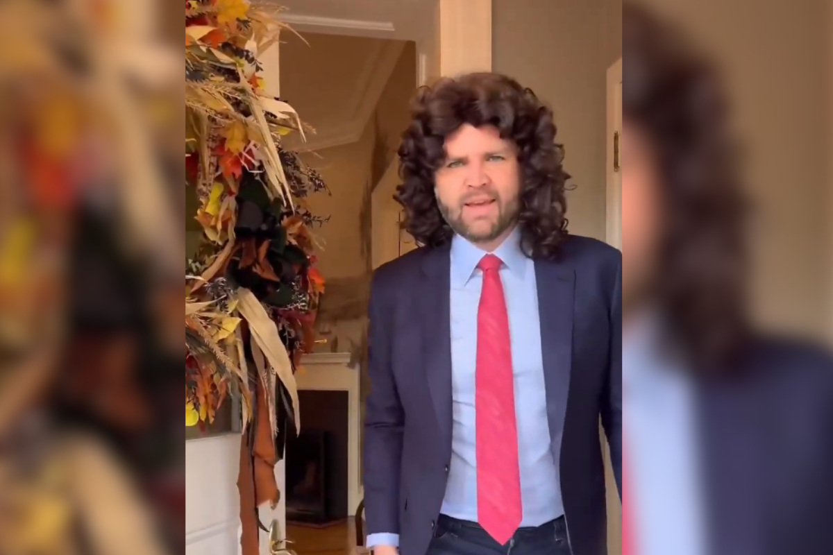 Un video publicado por el propio Vance muestra al vicepresidente vistiendo un saco azul marino, camisa celeste, corbata roja, jeans y una peluca rizada, completando así el look que imitaba a la perfección la imagen que circula masivamente en internet.